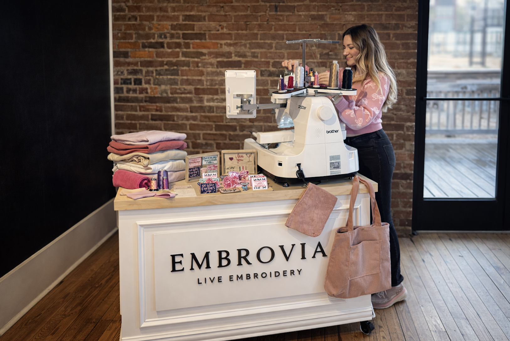 Inspired by my European roots and now based in Cary, North Carolina, I created EMBROVIA to bring a refined, in-person approach to live embroidery. Today, I am proud to debut the Triangle’s first live embroidery experience and set a new standard for on-site personalization.