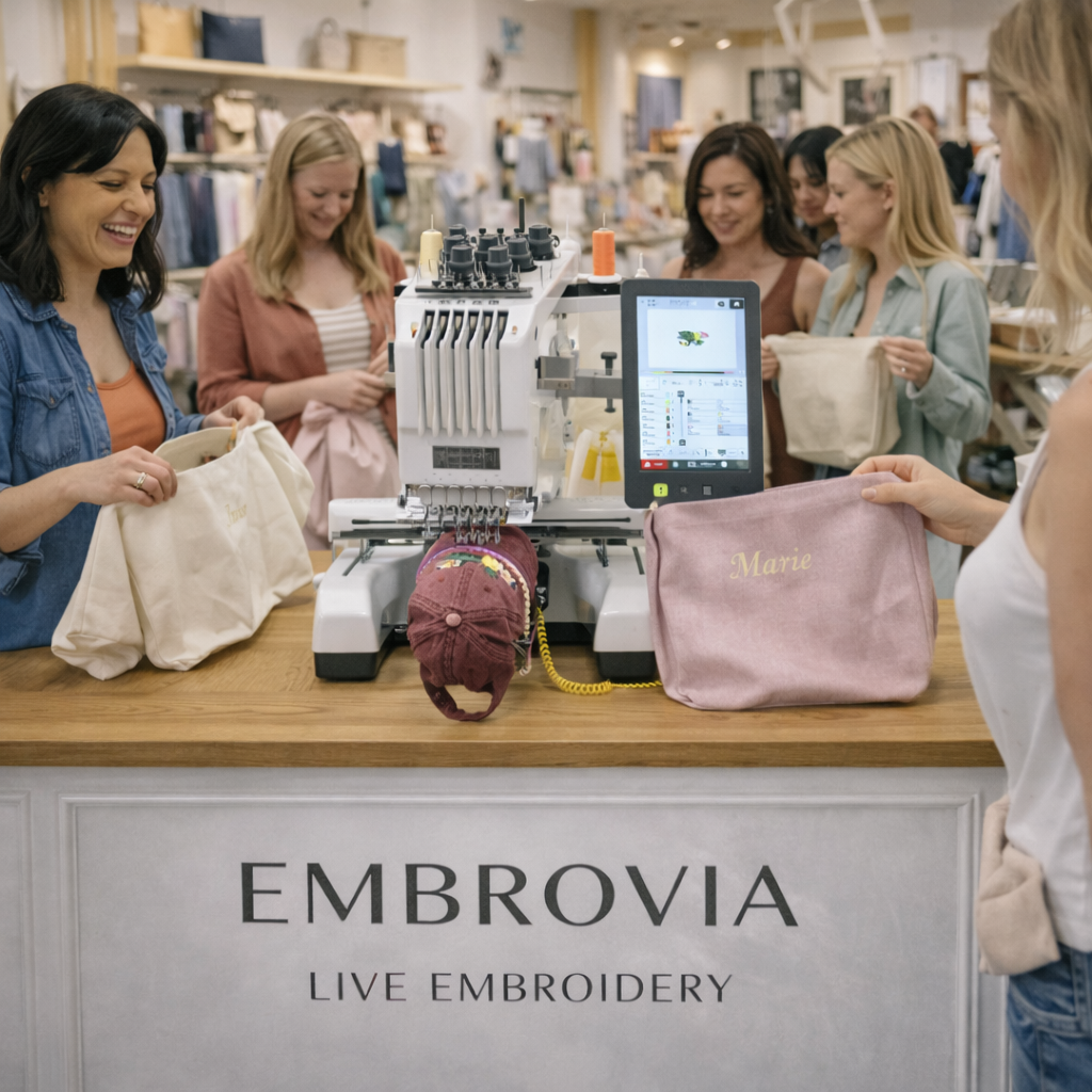 A mobile embroidery studio that brings live personalization into modern retail spaces.