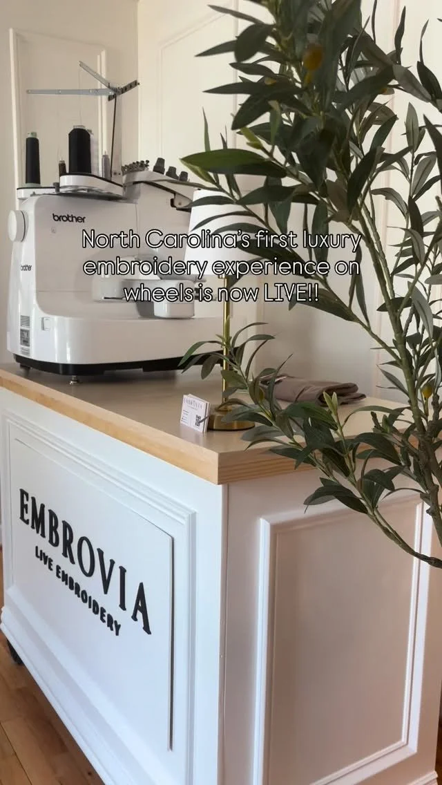 Inspired by my European roots and now based in Cary, North Carolina, I created EMBROVIA to bring a refined, in-person approach to live embroidery. Today, I am proud to debut the Triangle’s first refined live embroidery experience and set a new standard for on-site personalization that elevates both brand and customer experience.